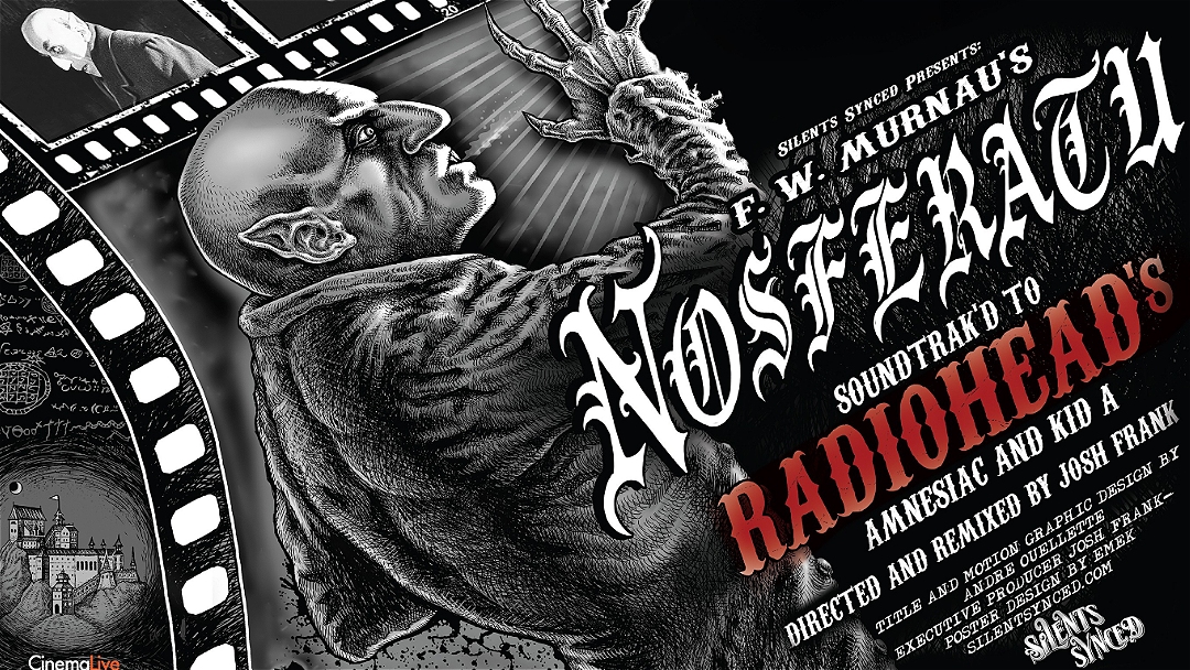 Silents Synced pairs classic silent movies with epic rock music to bring audiences a unique big screen experience. This reimagining of the iconic Nosferatu (1922) features Radiohead’s Kid A (2000) and Amnesiac (2001) albums.